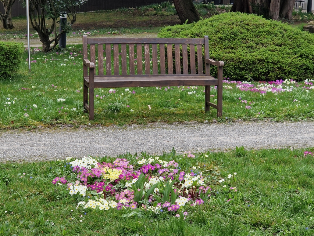 Im Frühling hat der Vianney Garten einen besonderen Flair. An jeder Ecke sprießen Primeln und Tulpen hervor.
